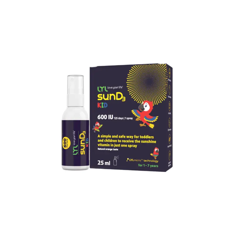 Paprastas, saugus ir įdomus būdas vaikams gauti 600 TV (15 µg) vitamino D₃ per vieną papurškimą. Purškiama mikroemulsija – patogu vartoti kūdikiams ir suaugusiesiems. Išpurškiamuose lašeliuose yra natūralių apelsinų kvapiklių ir dantims draugiško ksilitolio. Tinka vegetarams ir veganams. GMP/GGP gamybos kokybę patvirtina nepriklausomi laboratoriniai testai.